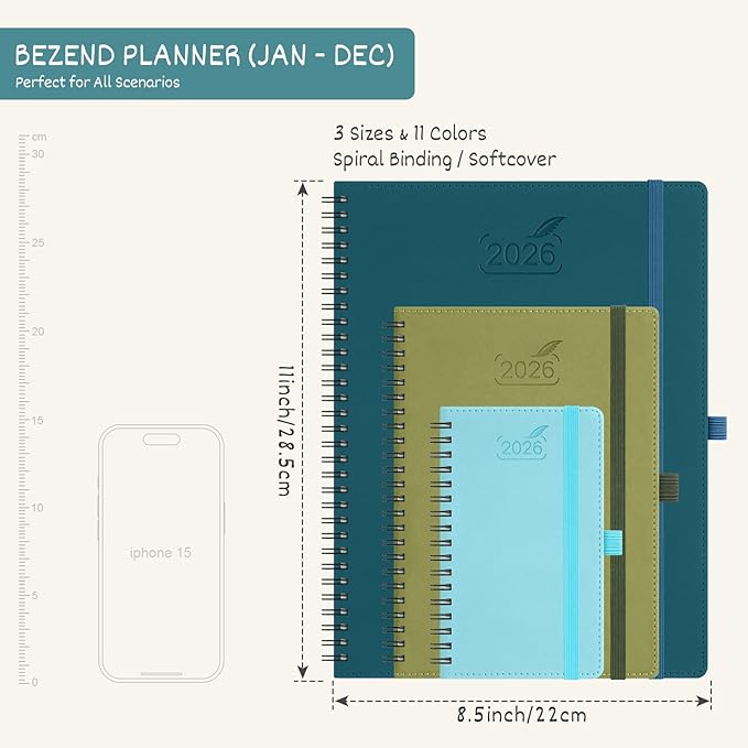 - DURABLE & SUSTAINABLE: The 100 gsm white paper, PU Vegan leather softcover and strong twin-wire spiral bound would save you from damage worries. More importantly, our BEZEND planners are all crafted using well-managed materials to maintain a sustainable office home school supplies