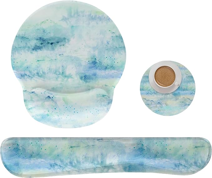 Ergonomic Keyboard Mouse Pad Wrist Rest Support Set for Laptop/Computer/Desktop,Memory Foam Hand Rest Wrist Cushion for Gaming/Office,Lightweight Comfortable & Pain Relief (Landscape Painting)