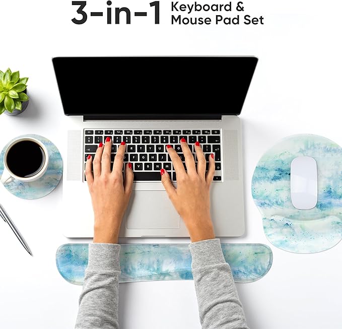 - 【Ergonomic Memory Foam Keyboard Mouse Pad Wrist Support】- Our AORTDES keyboard wrist rest pad wrist support mouse pad set is Ergonomic design and made of improved Super Soft & Smooth & Breathable Material and Comfortable Memory Foam to the pads, Long-term stability and not-easy deformation, comfortable, slow bounces back and not easy to out of shape.
