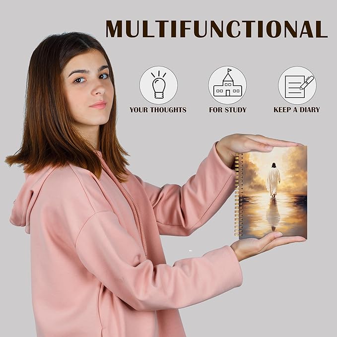 Qabliqo Jesus Walking on Water Christian Spiral Notebooks, Watercolor Jesus Journals for Writing, Christian Journal for Women Men, Vintage Religious Notebook for Note Taking, 5.5x8.3 Inch