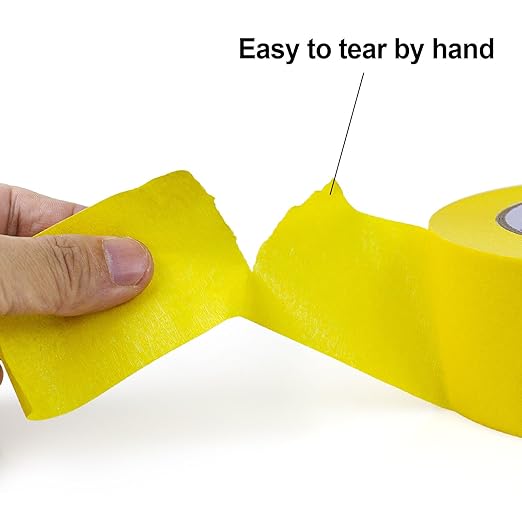 - Easy to Tear - 14 days Clean Remove Yellow Masking Tape - Tears easily so you can get the perfect piece quickly each time. When its job is done, it removes cleanly without damaging delicate surfaces. This pack of 5 yellow paint tape is suitable for any personal or professional project. The backing saturant of the color masking tape is solvent and moisture resistant, so the adhesive doesn’t transfer when the tape is wet