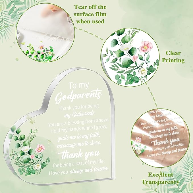 - WIDE APPLICATION: Whether you want to display these acrylic pieces on a tabletop, shelf, or use them as a paperweight, they offer a variety of placement options to suit your preferences, harboring an appreciation for godparents