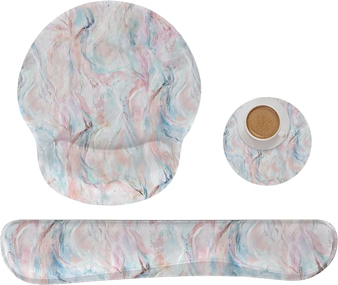 RICHEN Mouse Pad and Keyboard Wrist Rest, 3-in-1 Computer Mousepad and Coaster Set, Non-Slip Keyboard Wrist Rest and Mouse Pad Set Ergonomic Design(YKMWR-60)