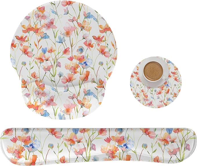 RICHEN 3 PCS Computer Mouse Pads for Desk with Coaster Set, Non-Slip Keyboard Wrist Rest and Mouse Pad Set, Ergonomic Design (YKMWR-52)