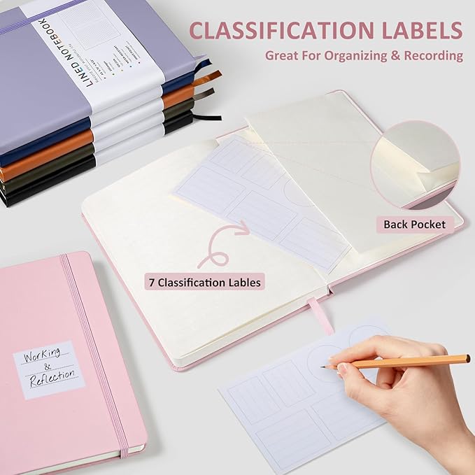 - 180° Lay Flat Design - The 180° lay flat design makes writing easier, reading more convenient, and taking notes more efficient. At the same time, the hardcover notebook is designed with an elastic closure band to ensure it is tightly closed to protect your content, and the inner paper will not be curled, and will be kept flat.