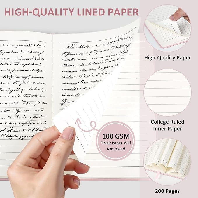 - 100Gsm Premium Paper - We use 100Gsm acid-free paper thick lined paper. Our journal paper is thicker than average notebooks & writing pads, so you can confidently use most pens, pencils, and markers. This superior-quality paper prevents any ink bleed-through, ensuring every note, sketch, or idea remains pristine and undisturbed on both sides. The Light yellow paper resists damage from light and air, and the paper protects your eyes from irritation.