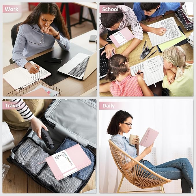 Lined Journal Notebook for Women Men, 200 Pages A5 Hardcover Leather Journals for Writing,Travel,School,Office,Work,Business,College Ruled Notebooks for Note Taking, Diary Notepad 5.7"×8.3"(Pink)