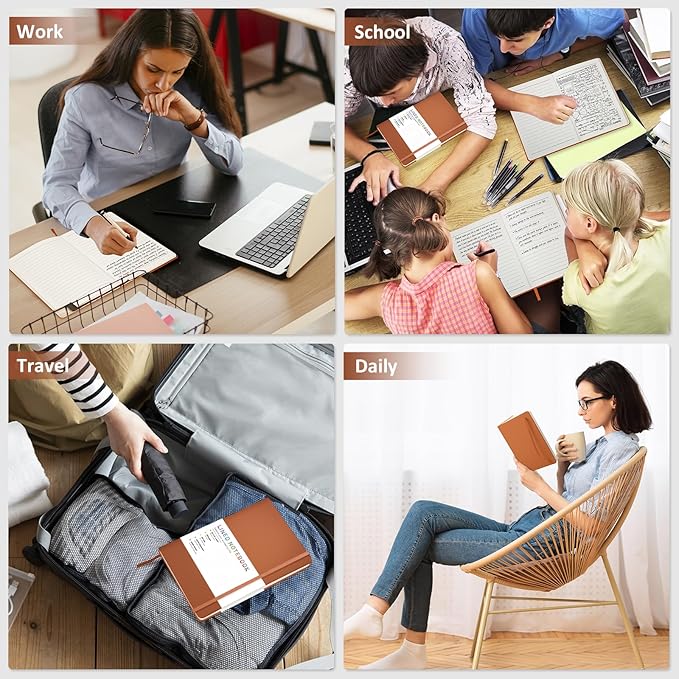 - Hardcover Leather Journal Notebook - This hardcover notebook is of sturdy leather, which protects the interior pages while traveling, and also makes this journal perfect. Suitable for most types of pens, perfect for travelers, business people, and students for writing journals, journaling, personal daily journals, travel journals, work notebooks, or for taking notes in college classes or meetings.