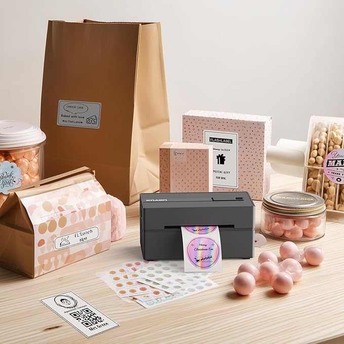 - Versatile DIY Labeling Options: KNAON Thermal Shipping Label Printer offers a vast selection of pre-designed templates, including 3,000+ templates, 5,000+ icons, and 100+ fonts available in the app. Designed for both professional and personal use, it supports various thermal paper sizes, ensuring effortless customization for all your labeling needs. Ideal for printing DIY shipping labels, barcode labels, thank-you labels, mailing labels, name tags, price tags, and various small thermal labels.
