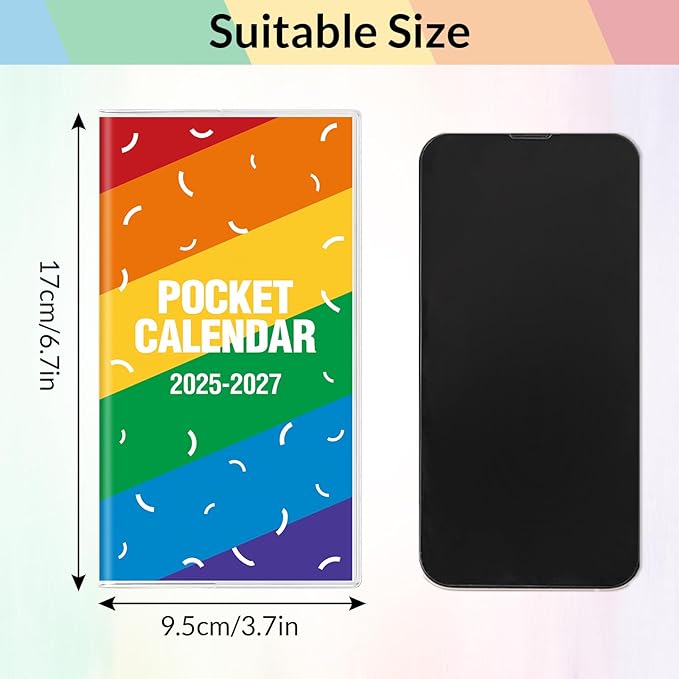Pocket Calendar 2026-2027, Rainbow Monthly Planner 2025-2027 - 3.7" x 6.7" - Runs from July 2025 Until December 2027, Pocket Calendar 2026 with PVC Cover for School, Home & Office Supplies