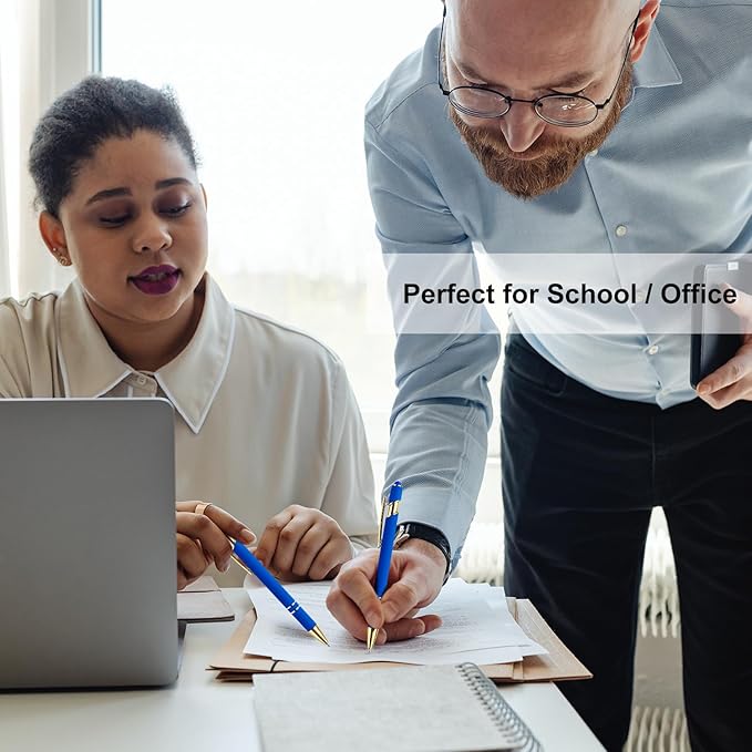 LINFANC 12 Pack Blue Gold Ballpoint Pen with Stylus Tip, 1.0 mm Black Ink Smooth Writing Pens, Metal Stylus Pens for Touch Screens