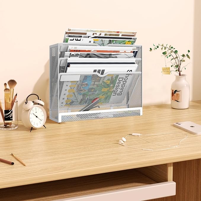 - 【Magnetic Wall-Mounted Magazine Organizer】The 3+1 Magnetic Wall File Organizer features 3 vertical pockets for easy document classification, perfect for storing magazines, recipes, mail, coupons, and more. The 1 flat bottom tray is ideal for holding stationery, desk accessories, or small essentials. Keep your space organized and clutter-free with this stylish and practical wall-mounted organizer.