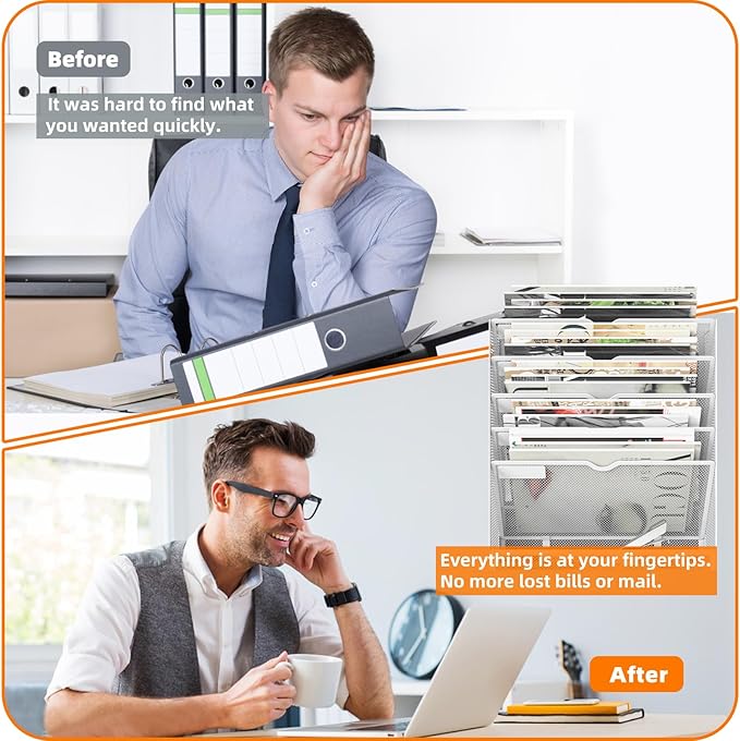 - 【Heavy-Duty Magnetic File Organizer】Designed to accommodate all your important files, folders, documents, and magazines with ease. Equipped with 3mm thick, ultra-strong magnets, this magnetic folder holder can support up to 25 lbs without budging. Even when fully loaded, it stays securely in place, thanks to its powerful magnetic backing. Built to last for years, it can handle heavy use and keep your documents safely organized without the risk of falling.