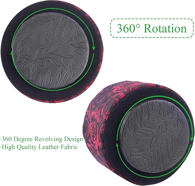 QIELIZI Round Leather Art Supply Organizer,Remote Control Holder,360 Degree Rotating,Multi-Functional Pencil Holder,4 Compartments Desktop Stationary Organizer(1-3D Rose Red)