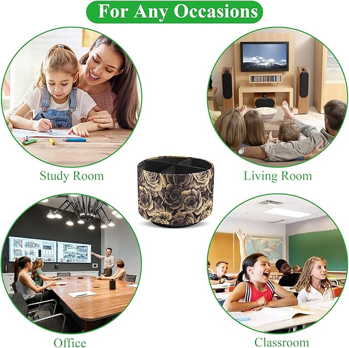 - ✎360° Revolving Design: You can freely rotate the pen holder steadily left and right,unique spinning base design allows easy access to items from any directions.The non-slip pads on the bottom keep it stay in place when rotating.