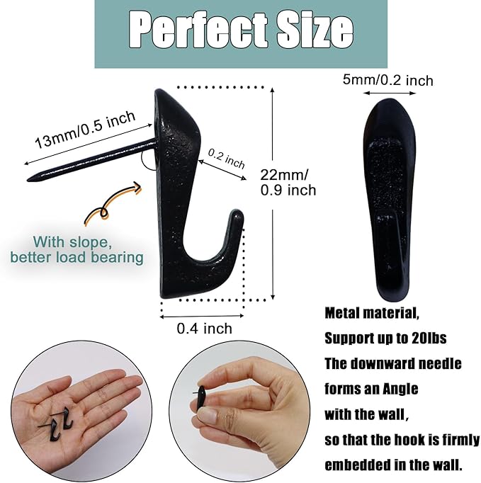 - Enough for Daily Using - Our decorative nails can save space by hanging some lightweight items, while is convenient for picking and placing them. In addition, compared to other nails that are nailing into the wall vertically, our tack hooks have a proper angle to ensure that it will be firmer when nailing into the wall.