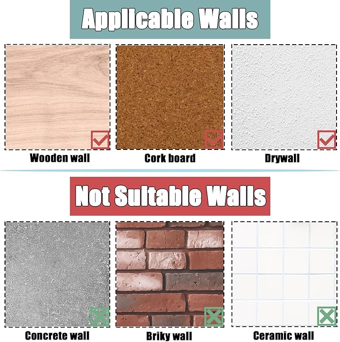 - Applicable Wall - These picture hanging nails are made of zinc alloy which is strong and corrosion resistant. Work great for dry wall, wooden wall, corkboard, and other soft platform. But not suitable for concrete wall, ceramic wall, cement wall, or other hard platform.