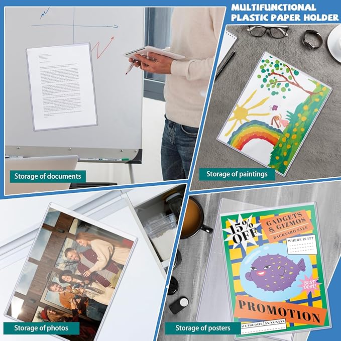 - Multifunctional plastic paper holder: Clear plastic document frames are suitable for storing and displaying drawings, notices, charts, photos, posters, recipes, artwork, documents, certificates, cards, etc. They are ideal for homes, schools, offices, shops, restaurants