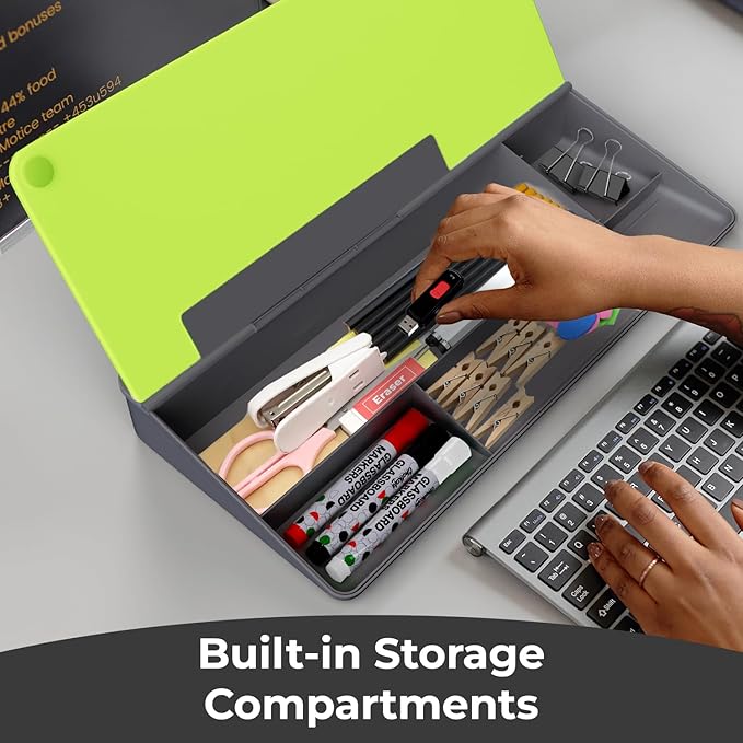 Chalkola Neon Green Glass Desktop Whiteboard with Storage - Dry Erase Board, Work Desk Organizers, Computer Keyboard Stand, Home Office Desk Accessories, Workspace Desktop Buddy + 3 Markers