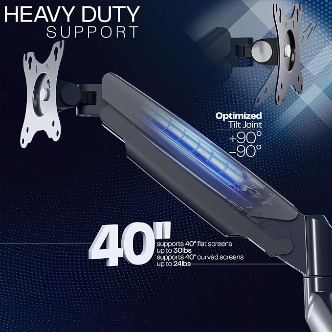 - Ultrawide Compatibility: Supports 13” to 40” monitors with 75x75mm or 100x100mm VESA patterns. Holds curved displays up to 24 lbs and flat screens up to 30 lbs, including ultra-wide models