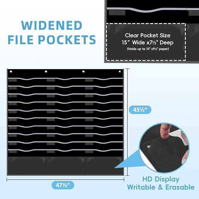 - 【Fits All Document Sizes】Each storage pocket is designed with a 15-inch widened design, which perfectly stores Legal, A4, Letter size paper and manila file folders, avoiding document curling.Each deep pockets can effectively organize office contracts, magazines, letters, emails, home bills, kids' homework, stationery and toys, and other small items. Keep each type of items organized with dedicated space.