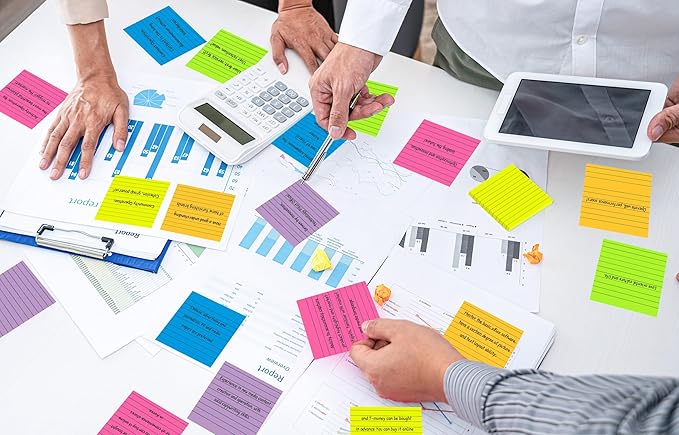 (12 Pads) Lined Sticky Notes 4x4 in Post, 6 Bright Colors with Lines Self-Stick Note Pads it, Strong Adhesive, 46 Sheets/Pad, 552 Sheets in Total