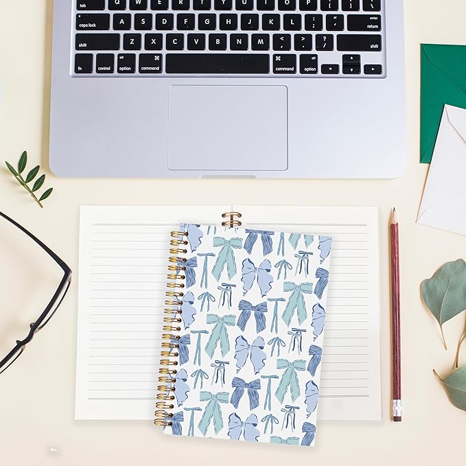 BearCake Bow Notebook Journal,Trendy Coquette Blue Bow Notebook for Women Notebook Note Taking,Hardcover Spiral Notebook 5.5x8.3