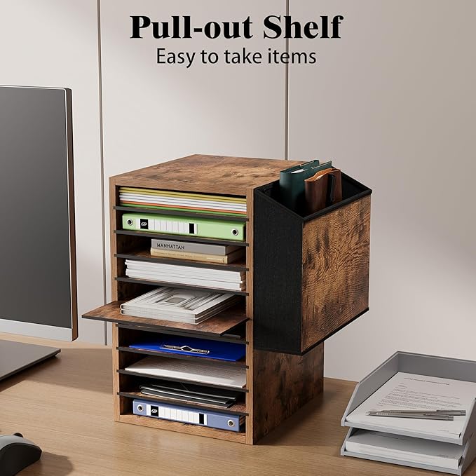 - Durable & Stylish:Dimensions:11.81"x10.4"x16.14". The wooden paper organizer crafted from sturdy, premium particle board.Providing the durability of the product