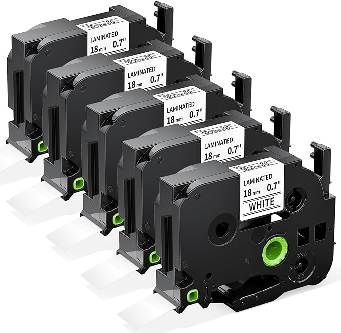 Labelife TZe-241 TZe TZ Tape 18mm 0.7 Laminated White Compatible with Brother P Touch Label Maker Tape 18mm .7 TZe241 for Brother PT-D400 PT-D410 PT-PT-D600 D610BT PTD460BT, 5-Pack, 3/4 Inch