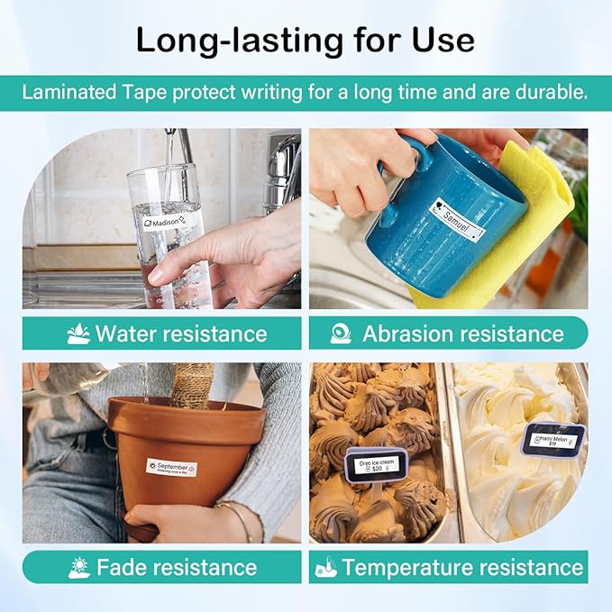 - [Wide Application] TZ tape 18mm 0.7 laminated white is good addition for business, home, office, retail shop, warehouse and more. TZe241 label tape is great ideal for labeling kitchen, shelving, cabinets, files, folders and accessories.