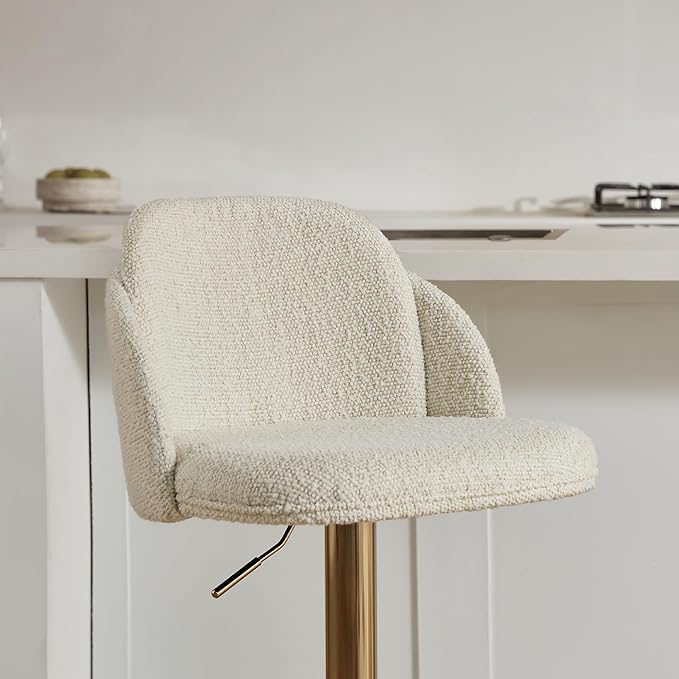 - Designed for All-Day Comfort: These upholstered bar stools feature a contoured backrest and arched footrest designed to provide ergonomic support. Fabric is certified by OEKO-TEX, which offers plush, breathable comfort while maintaining exceptional durability. The textured upholstery feels luxuriously soft yet stands up to daily use.