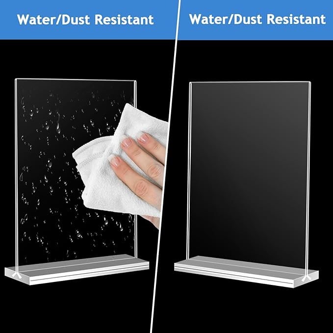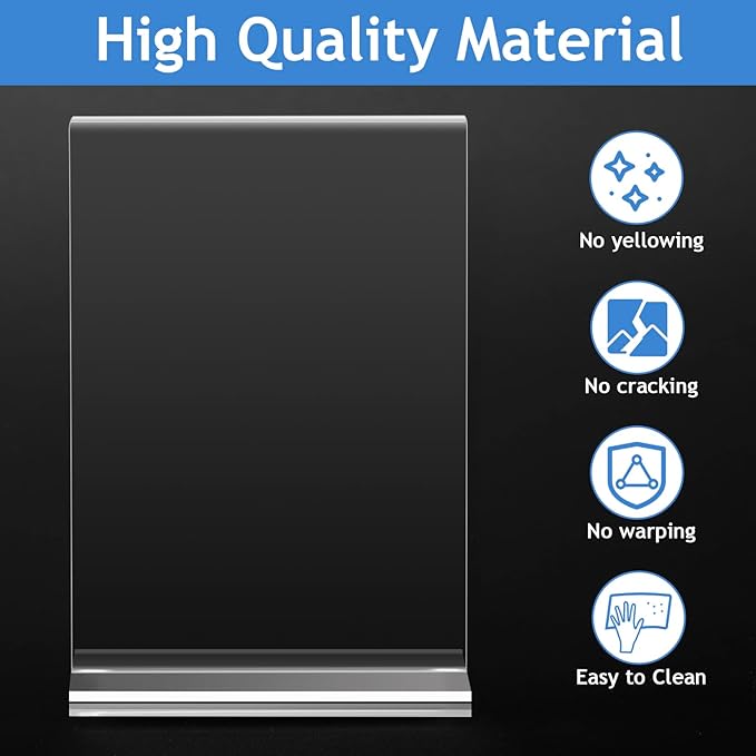 - Vertical T-shaped Base: These acrylic sign holder 5x7 is T Shape design and sturdy base, T-shaped base with stability grooves prevents tipping. Self-standing 5x7 holder securely displays images, announcements, or pamphlets.