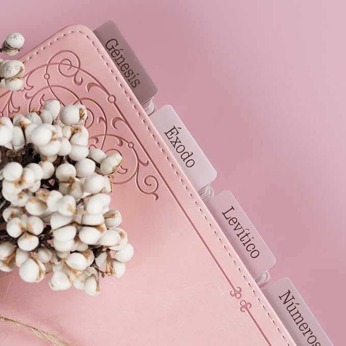 UPAFEXXI-Spanish Laminated Bible Tabs for Women and Men(Gold Foil Embossed Lettering) Pestañas de la Biblias, 80 Reposition Large Print tabs, Easy to Read and Apply(Pink)