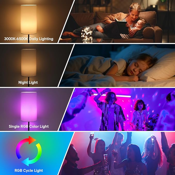 - 3 CCT & Stepless Dimming Brightness: Effortlessly adjust the color temperature (3000 K/4500 K/6500 K). Long-press to control the brightness from 10% to 100% as per your requirements. Both the 3 CCT and RGB colors can be dimmed. This table lamp can help set the mood in a room, whether you need bright light for reading or a softer glow for relaxation.