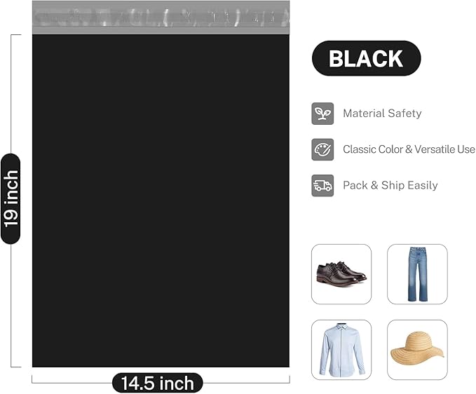 - Convenient and Economical - 14.5x19 inches Shipping bags are an affordable alternative to standard packaging. Poly mailer bags are great for shipping light and less fragile products, such as clothing, apparel and accessories, shirts, shoes, jeans, books, cosmetics,supplements and much more!