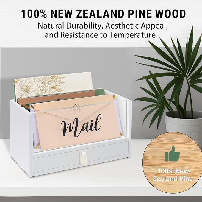- 【Handmade by Artisan – Modern Home Style Mail Holder】 This countertop mail organizer helps you store and sort mail, bills, and files quickly and efficiently. It features a clean, modern design with a clear acrylic top and a white-painted body. Each piece is carefully handcrafted, painted, and assembled by our experienced wood artisans. Every mail holder is unique and made with care and attention to detail.