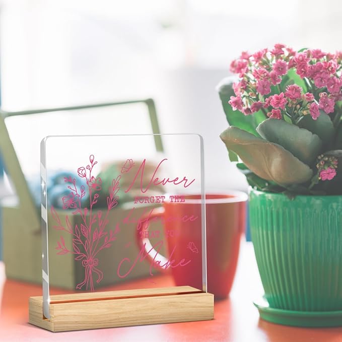 Pink Wall Decor Never Forget The Difference You Make Inspirational Positive Affirmation Motivational Thank You Appreciation Sign Acrylic Sign Plaque Table Decorations for Home Office Retirement