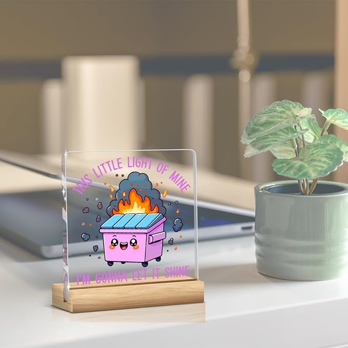 Dumpster Fire Desk Decor Accessories Funny Purple Office Decor Inspirational Coworker Gifts Acrylic Sign Plaque Table Decorations for Home Workplace