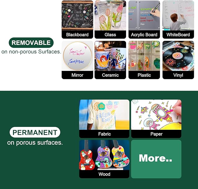- Versatile. Best use on blackboards, chalkboard, dry erase board, glass, windows, plastic, ceramic and most nonporous surfaces.