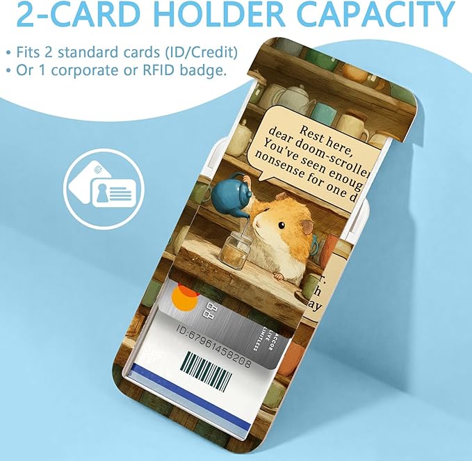- Funny Design with Motivational Quote: This cute badge reel is designed with hamster arts: Rest here, dear doom-scroller. You’ve seen enough nonsense for one day. The set includes a detachable lanyard, heavy-duty badge reel, and card holder, perfect for adding personality to your work accessories