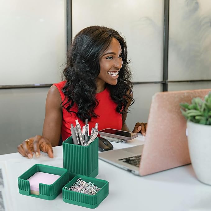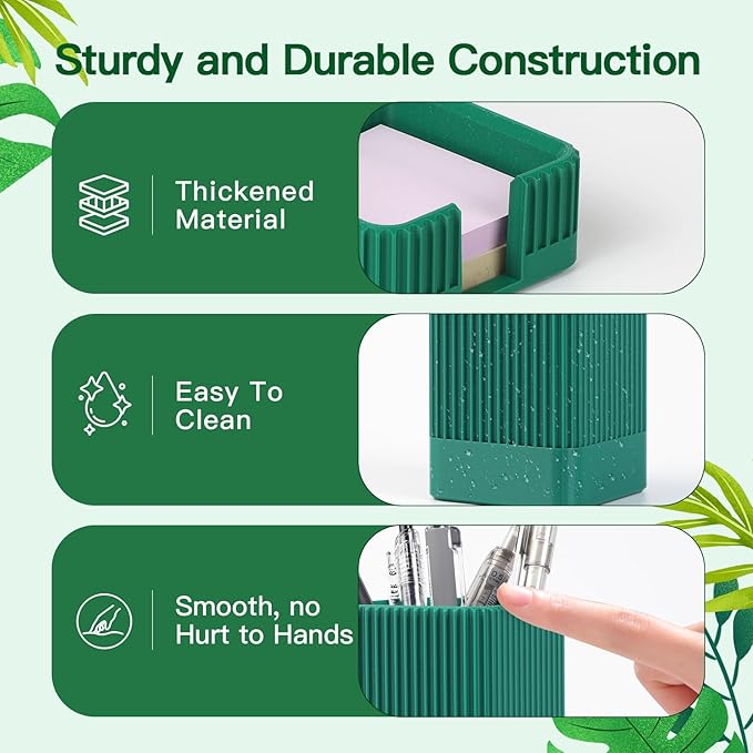 Aesthetic Desk Organizers and Accessories Set of 3 with Pen Holder,Paperclip Holder,Sticky Note Holder - Durable Plastic Pencil Holder for Office Women Men-Teacher Appreciation/Back-to-school Gift