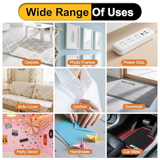 - 【Multifunctional Double Sided Tape】: Secures rugs, carpets, and DIY crafts instantly, eliminating tripping hazards and messy glue. Ideal for walls, tiles, and cars—no drilling or residue.