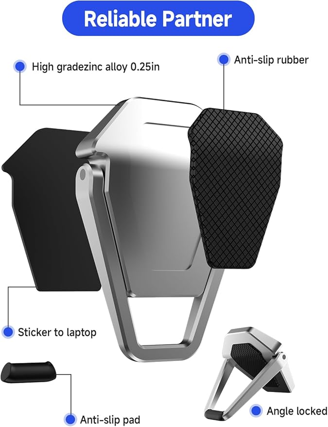 - Sturdy Secure Stand: The laptop stand is made of aluminum alloy, with a triangular design to secure your laptop and keyboard, and a silicone ring at the bottom of the stand to increase friction with the desktop to prevent the device from sliding and scratching