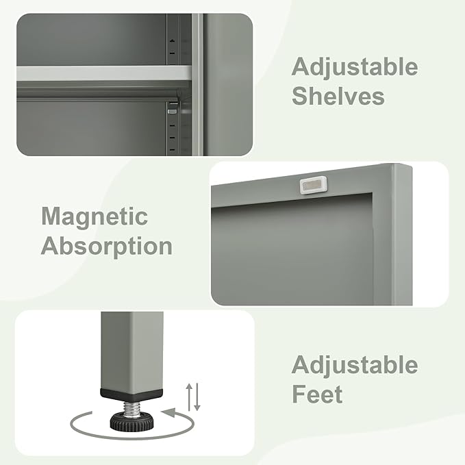 - 【Perfect storage space】Perfectly sized, compact, attractive and space-saving, this green metal cabinet measures 15.75"L × 13.78"W × 25.6"H, making it easy to move around any corner!