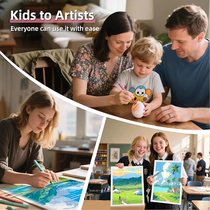 - 【Portable Creative Studio】:Custom 3-layer acrylic case + accessory envelope; Enhanced protective box reduces shipping damage risks; Quick-access design with color-coded caps; Perfect for indoor/outdoor painting; classroom projects or holiday decorations
