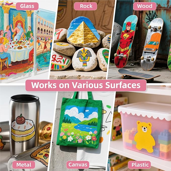 - 【Professional Performance】: Water-based ink certified ASTM D4236&EN-71;Non-Toxic,Waterproof and fade-resistant after drying; Opaque coverage even on dark materials; Suitable for artists; students and DIY crafts