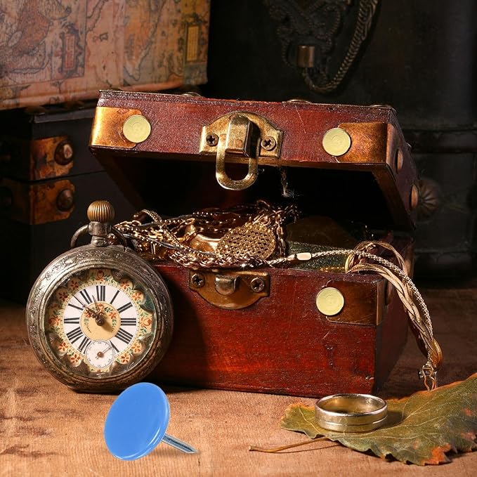 - [Wide Application] - The thumb tacks are both practical and decorative and can be used in a variety of furniture and DIY craft projects. Widely used to decorate furniture such as upholstery, sofas, headboards, chairs, benches, stools, wooden boxes, and can also be used to fix memos, pictures, maps and other lightweight items on cork boards