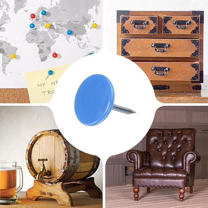 - [Wide Application] - The thumb tacks are both practical and decorative and can be used in a variety of furniture and DIY craft projects. Widely used to decorate furniture such as upholstery, sofas, headboards, chairs, benches, stools, wooden boxes, and can also be used to fix memos, pictures, maps and other lightweight items on cork boards