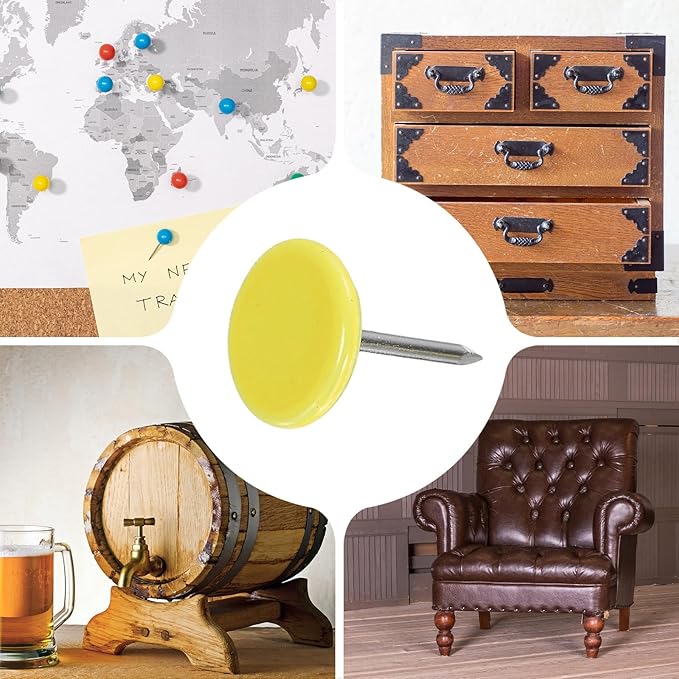 - [Wide Application] - The thumb tacks are both practical and decorative and can be used in a variety of furniture and DIY craft projects. Widely used to decorate furniture such as upholstery, sofas, headboards, chairs, benches, stools, wooden boxes, and can also be used to fix memos, pictures, maps and other lightweight items on cork boards