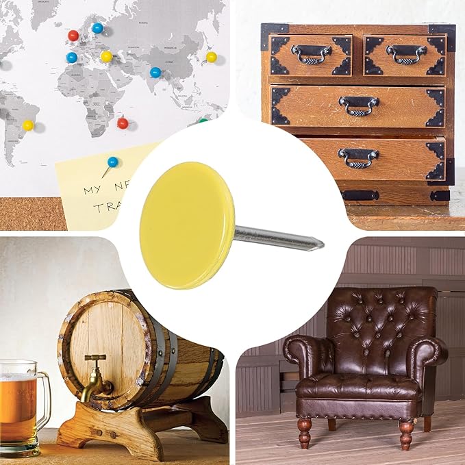 - [Wide Application] - The thumb tacks are both practical and decorative and can be used in a variety of furniture and DIY craft projects. Widely used to decorate furniture such as upholstery, sofas, headboards, chairs, benches, stools, wooden boxes, and can also be used to fix memos, pictures, maps and other lightweight items on cork boards